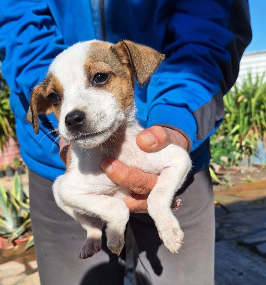 Η Χλόη βρέθηκε σε μια κούτα μέσα στην καταρρακτώδη βροχή να τρέμει από το κρύο μαζί με τα αδελφάκια της αγκαλιά για να μη κρυώσουν. Είναι 2,5 μηνών και θα φτάσει τα 15 κιλά μεγαλώνοντας . Έχει αποπαρασιτωθεί και έχει κάνει τα πρώτα της εμβόλια.