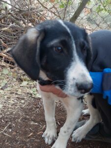 Η Peanut ημίαιμο κουταβάκι 5 μηνών. Βρέθηκε σε σακί σε ποτάμι στο Βαραμπά Μαρκοπούλου μαζί με άλλα 7 κουταβάκια. Έχει αποπαρασιτωθεί και είναι πλήρως εμβολιασμένη.
